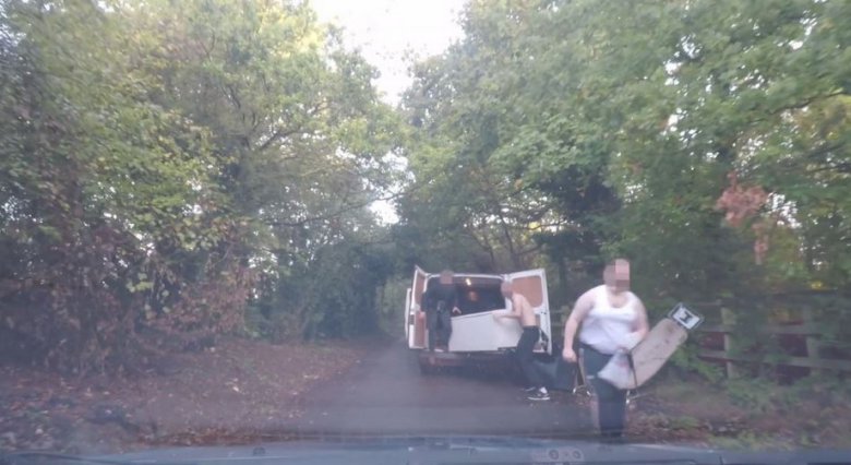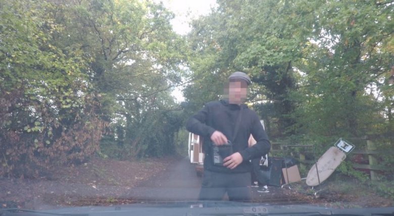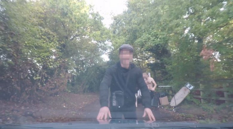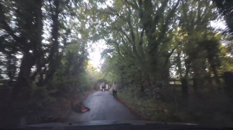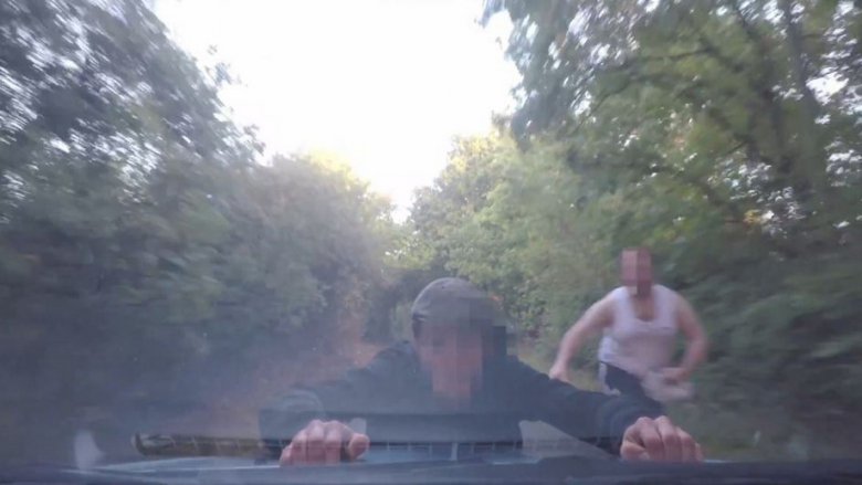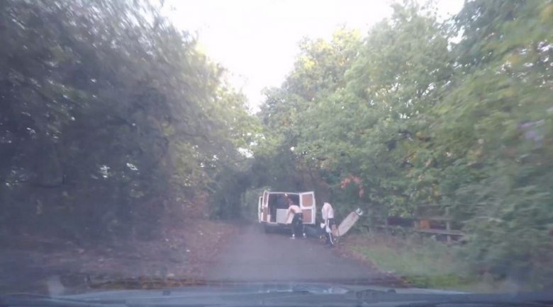 Венди Гордон ехала по тихой деревенской дороге, когда она наткнулась на трех мужчин, которые, перекрыв дорогу своим фургоном, вытаскивали из него холодильник. Женщина скала им, что это незаконный сброс мусора. Мужчины посоветовали не лезть не в свое дело, но потом заметили видеорегистратор и потребовали отдать запись. Венди решила спасаться бегством и врубила заднюю передачу. Один из мужчин запрыгнул на капот машины и проехал так несколько метров, но потом упал на дорогу. Женщину на столько шокировала эта ситуация, что выложить запись в сеть она решилась лишь через год после происшествия.