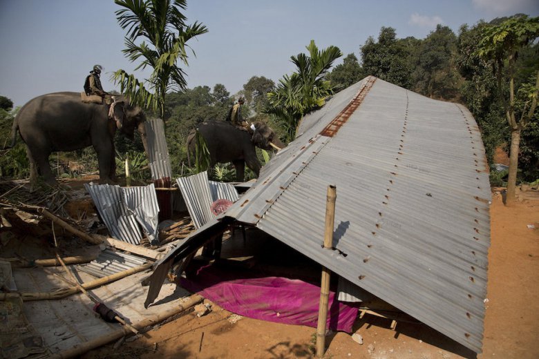 Индийская полиция использовала слонов, чтобы снести бараки из бамбука и металла, в которых жили нелегально сотни людей в заповедной зоне Амчанг в штате Ассам на северо-востоке Индии. Жители пытались обороняться камнями, но полицейские разогнали их слезоточивым газом, 5 человек получили ранения. Местные власти планируют снести около тысячи домов, так как данный район является зоной обитания слонов и несанкционированные поселения заставляют животных уходить в поисках пищи. Было много инцидентов, когда дикие слоны входили в деревни, уничтожали посевы и даже убивали людей.