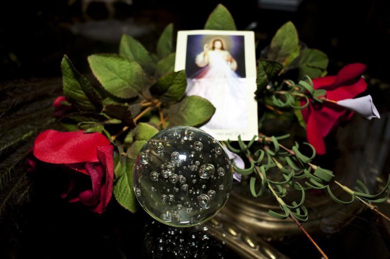 «В этом сообществе обычно мужчины содержат семьи. Зарабатывают ли они честным трудом или нет, это уже другой вопрос. Гадания и предсказания судьбы — древнее ремесло и единственное, которым разрешено заниматься здесь женщинам. Это также единственный способ для здешних женщин добиться уважения и успеха. Девочки ходят в школу до 18 лет, но матери, тети и бабушки обучают их колдовству. Каждая девочка сама решает, правильное это занятие или нет, ведь зачастую им приходится обманывать клиентов». На фото: дома здесь стараются обставить максимально пышно, украшая интерьеры золотыми стульями или огромными телевизорами. Это дом ведьмы по имени Амалия, которая в момент фотосессии обучала свою племянницу колдовству.
