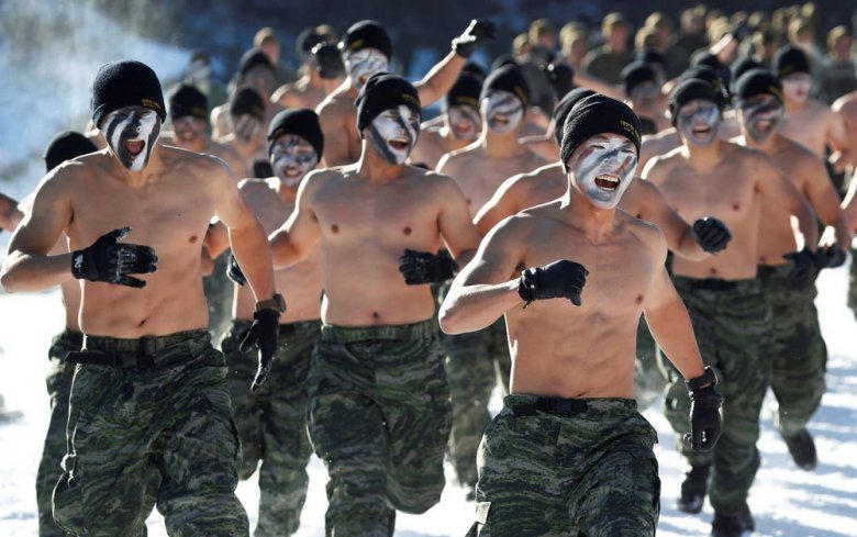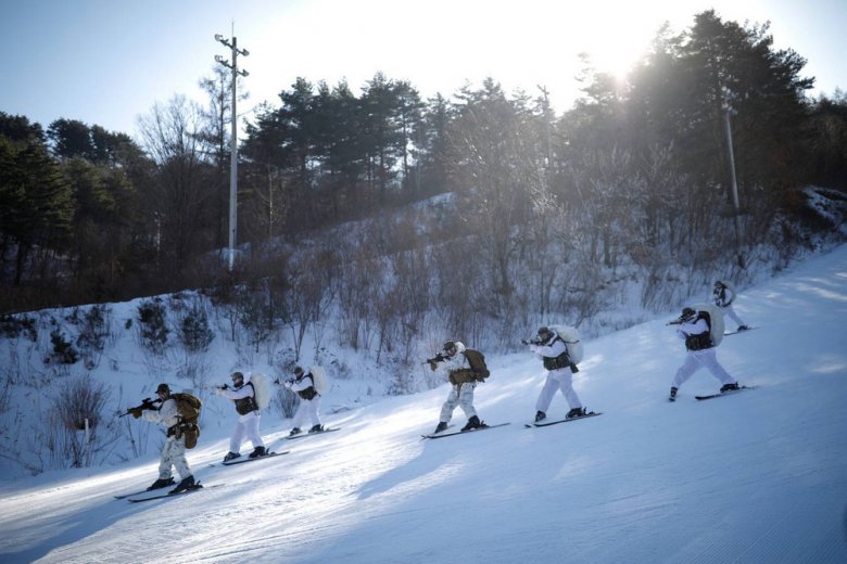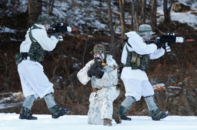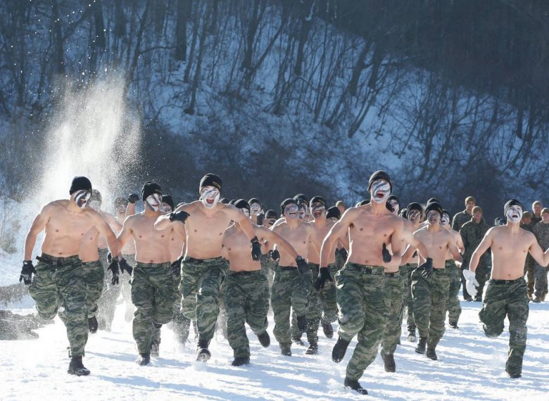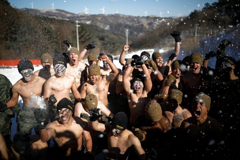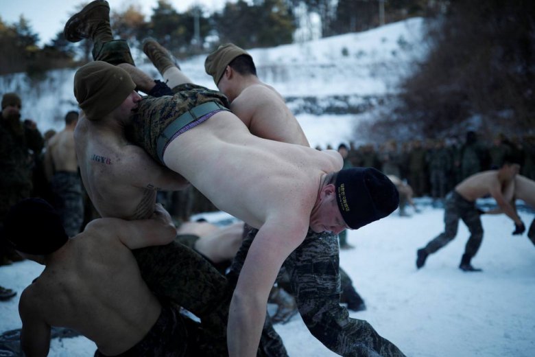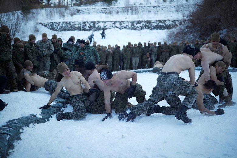 4 декабря 2017 года начались самые масштабные совместные военные учения США и Южной Кореи. На одном из этапов учений сотни южнокорейских и американских морских пехотинцев тренировались на морозе в снегу, будучи обнаженными по пояс. Эти маневры зимой проводятся каждый год с целью предотвращения возможных атак Северной Кореи.