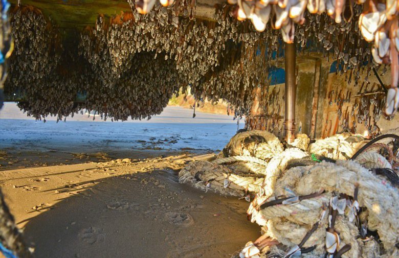 Рыболовное судно с японским названием было обнаружено на пляже Аркадия-Бич в штате Орегон. Корабль был не один. На нем гордо восседали чайки, привлеченные местной жизнью — ракушками, захватившими корабль во время его шестилетнего дрейфа в океане. Морские уточки расселились по всему судну — и внутри, и снаружи. Настоящее изобилие деликатесной продукции.