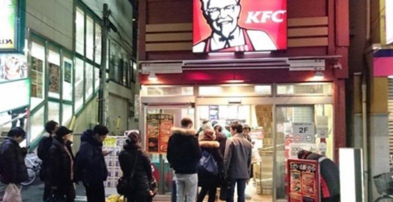 В декабре японская сеть KFC настолько перегружена, что многие делают свои заказы заранее. Те, кто не позаботился об этом, обречены на долгое стояние в очередях. В Рождество «кентуккийских цыплят» покупают миллионы японских клиентов, а в рекламной компании сети участвуют многие крупнейшие японские знаменитости.