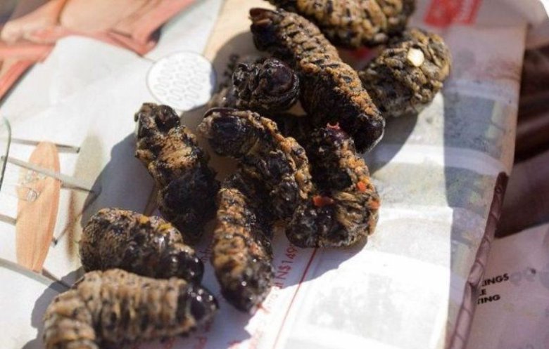 Рождественский ужин многих южноафриканцев похож на блюда героев реалити-шоу «Я знаменитость… Заберите меня отсюда!»: он включает в себя жареных гусениц. В отдельных районах Африки гусеницы бабочки Gonimbrasiabelina считаются изысканным блюдом, и ими часто украшают рождественский стол.