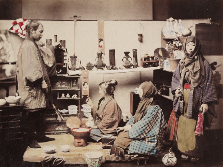 Снимок, сделанный и раскрашенный Феличе Беато: женщины в традиционной японской лавке, конец XIX века.