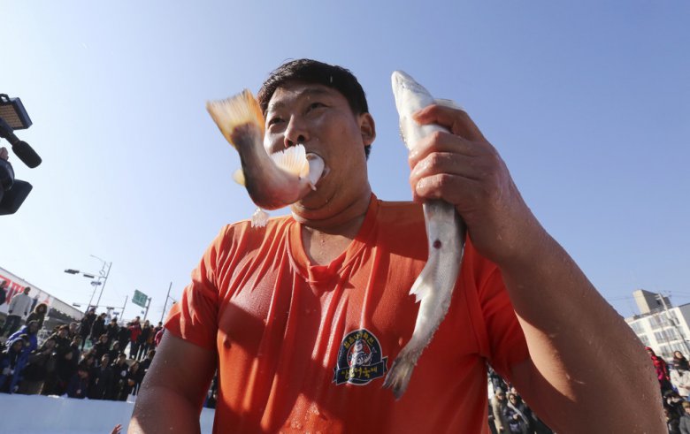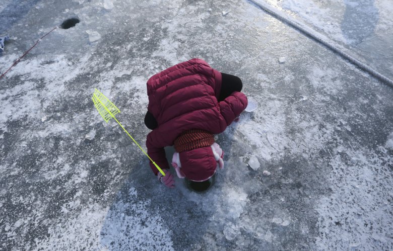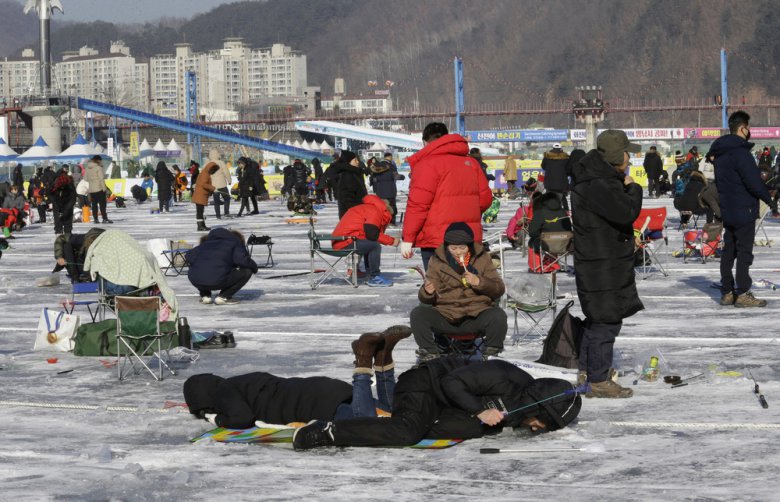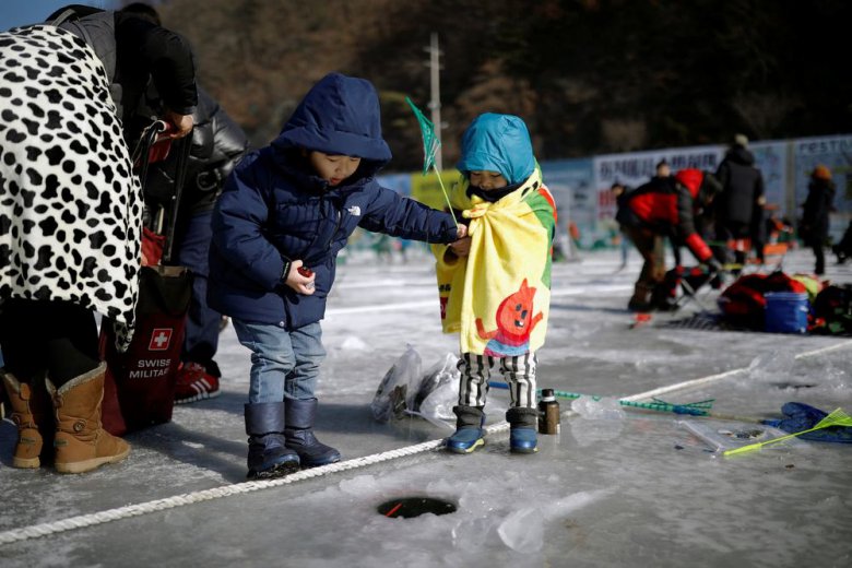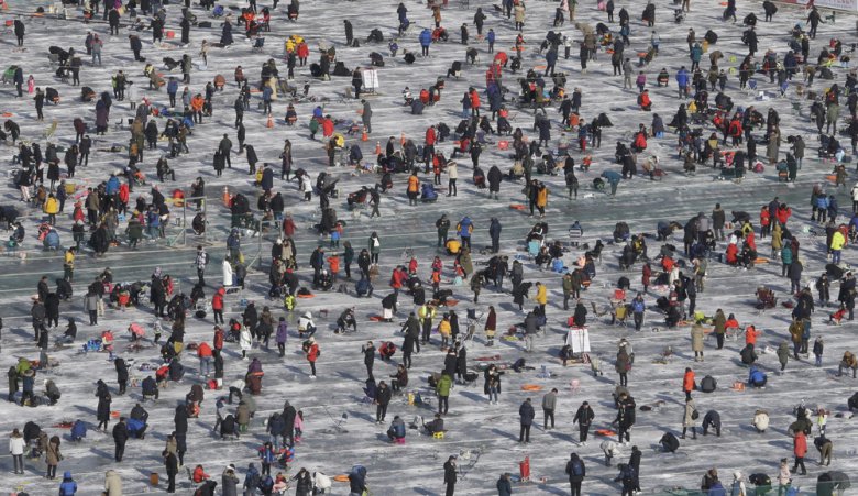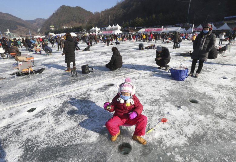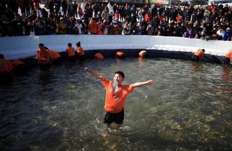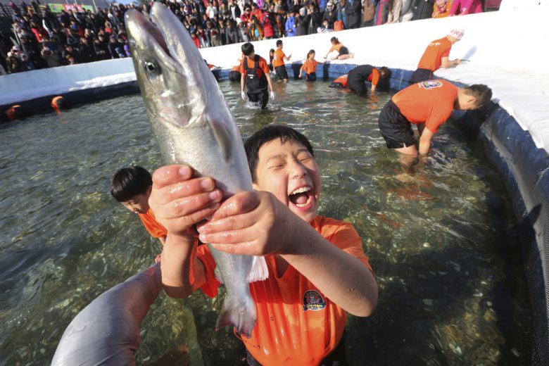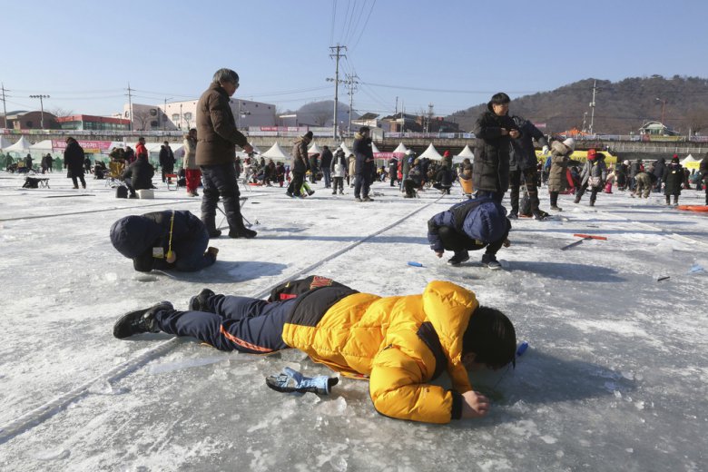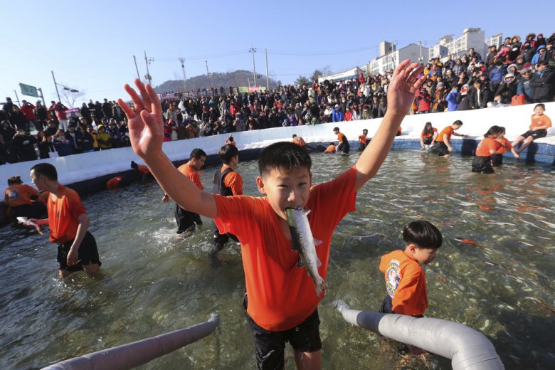 6 января в Хвачхоне, Южная Корея, прошел конкурс по ловле форели. Рыбаки соревновались как в подледной рыбалке, так и в ловле руками в бассейне. Конкурс является частью ежегодного ледового фестиваля, который привлекает более 1 000 000 посетителей каждый год.