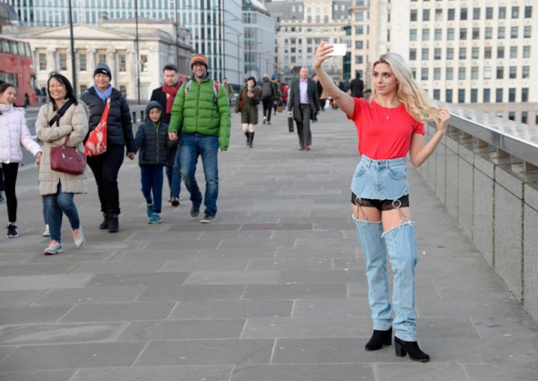 В Великобритании набирают популярность странные джинсы из коллекции Black Label фэшн-лейбла The Ragged Priest, которые были замечены в каталоге Asos. Стоимость таких штанишек составляет £75. В редакции издания thesun.co.uk решили провести эксперимент: нарядили 23-летнюю Annabel Myzel в эти джинсы и отправили гулять по январским улицам Лондона. Девушка не осталась незамеченной и привлекла всеобщее внимание.