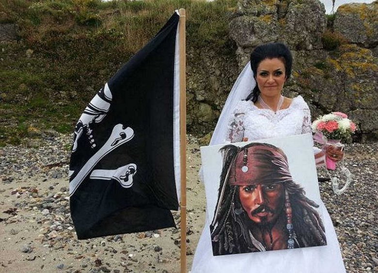 В своей обычной жизни Аманда, живущая в Северной Ирландии, работает имитатором капитана Джека Воробья и полагает, что именно это свело её с супругом.