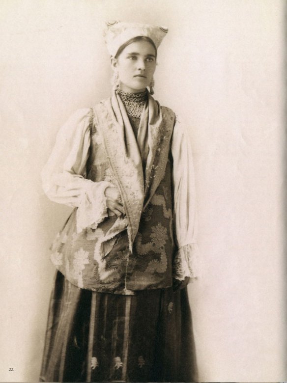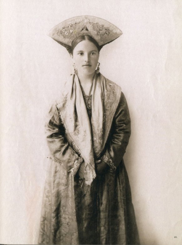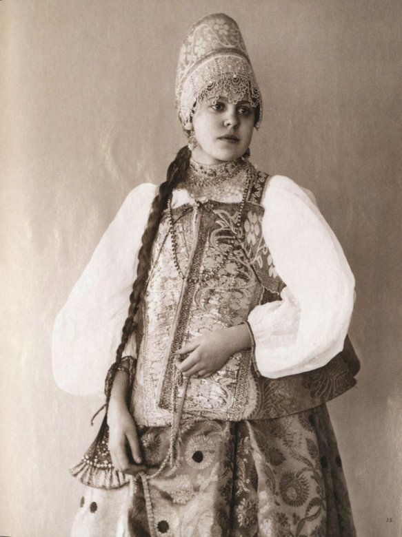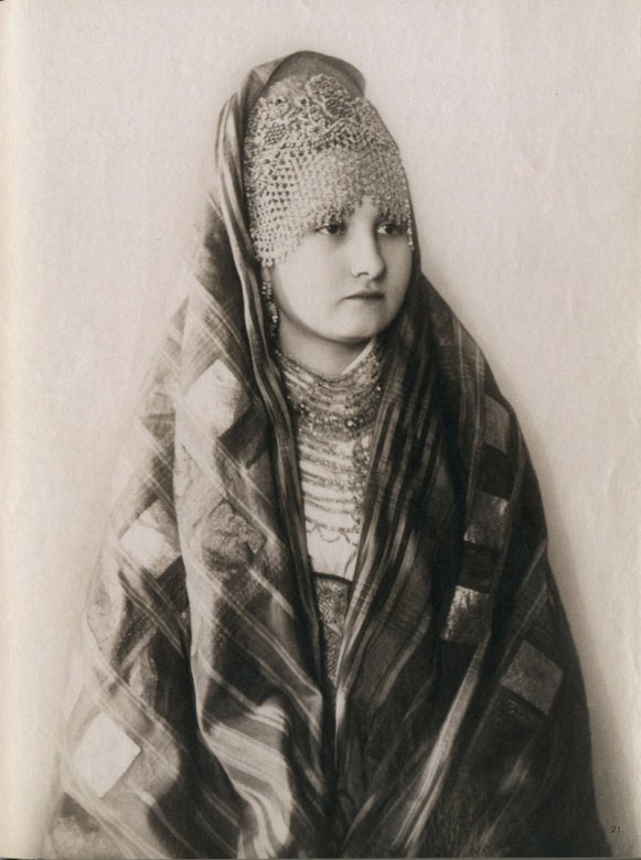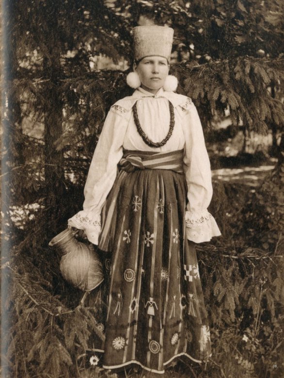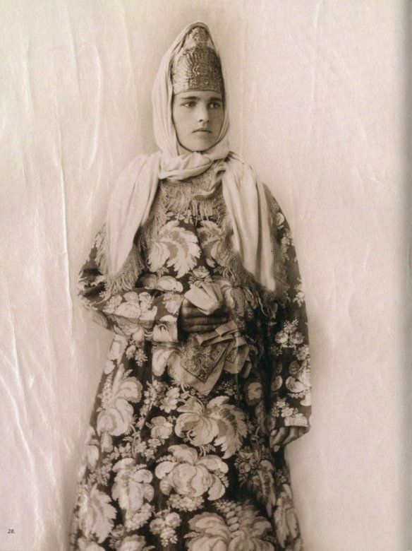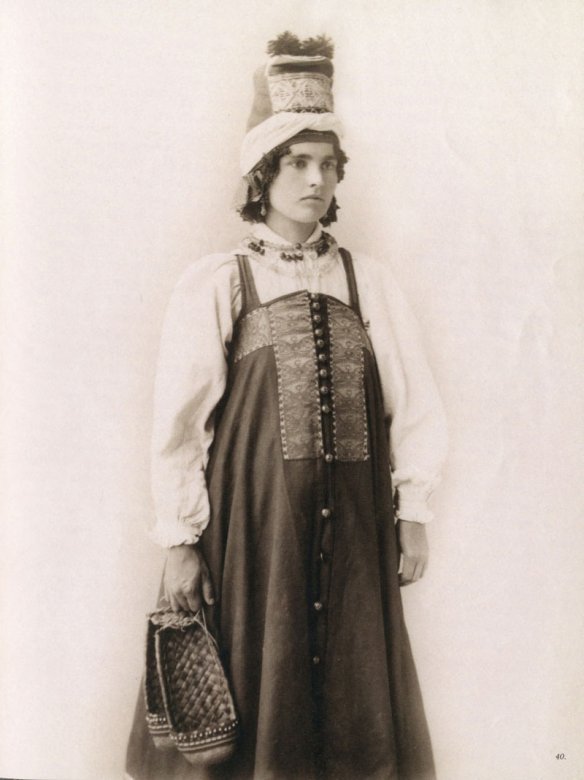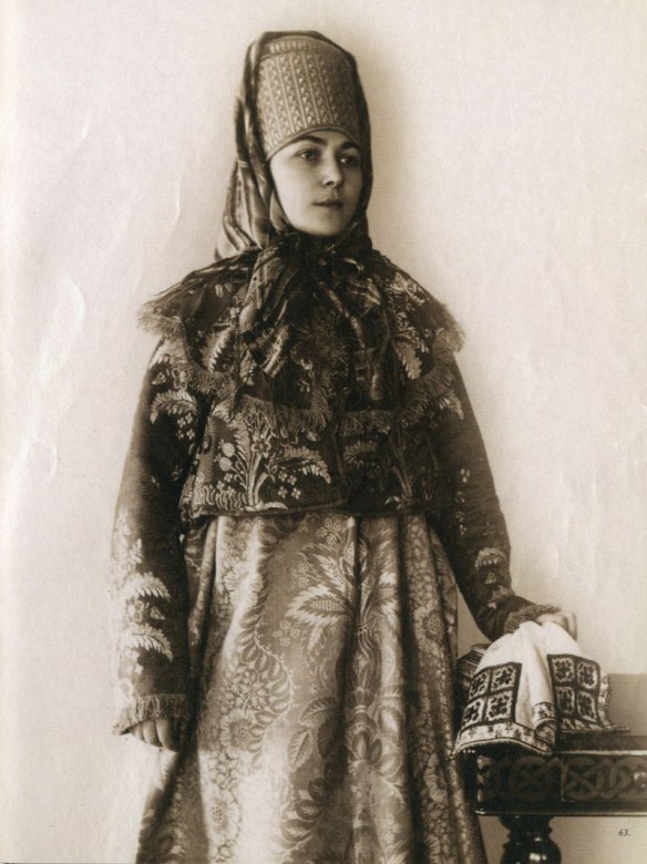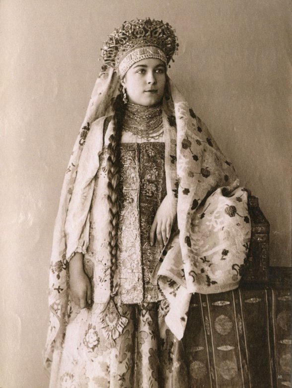 Эти фотографии сделаны в конце 19-го века и в настоящее время хранятся в коллекции Российского этнографического музея. В них запечатлены женщины в традиционных костюмах из разных регионов Российской империи. И хотя в снимках можно заметить много региональных различий, есть в нарядах два схожих базовых элемента – сарафан и кокошник.