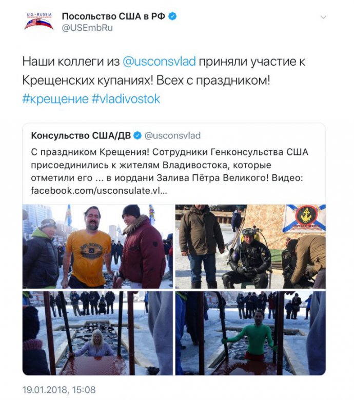 И последнее. Обряд крещенского купания традиционно является символом очищения от скверны. Вероятно, что-то в этом всё-таки есть. И что бы в этом убедиться, достаточно просто понаблюдать за реакцией на крещенское купание Путина)
