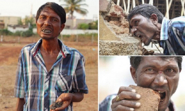 У этого мужчины зависимость — ему необходимо постоянно есть что-то несъедобное. Чаще всего он откусывает куски от камней и проглатывает их. При этом его пищеварительная система не страдает и вообще он не испытывает никакого дискомфорта.