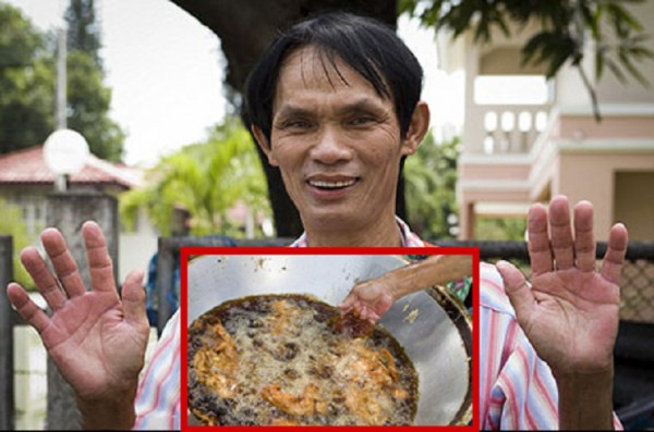 Однажды обычный продавец курицы-гриль Чиан Мэй из Таиланда увидел, как белка уронила в чан с кипящим маслом манго. Машинально он погрузил руки в емкость и достал манго. Так обнаружился его талант — с кожей на руках ничего не произошло. Боли он тоже не испытал. Теперь Чиан Мэй развлекает публику, умывая руки в кипящих жидкостях.