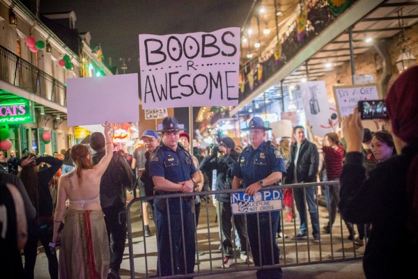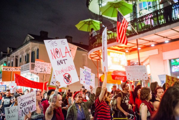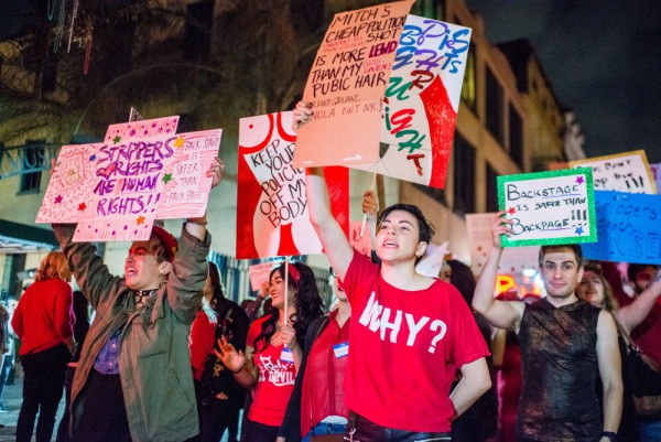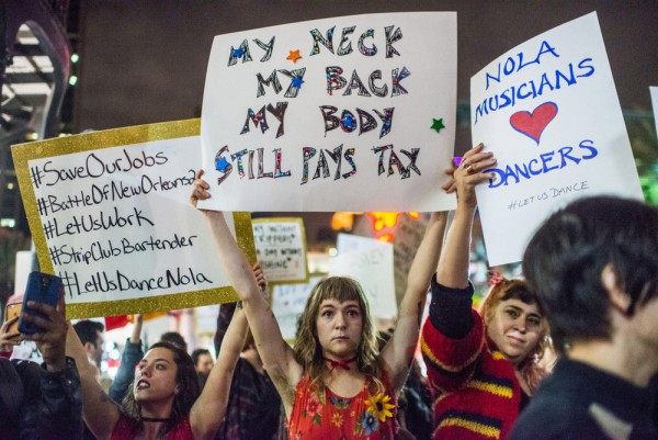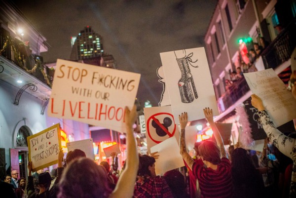 Десятки работников стриптиз-клубов Нового Орлеана вышли на улицу 1 февраля в знак протеста против рейдов полицейских, которые привели к закрытию нескольких стрип-клубов на Бурбон-Стрит. Всего было закрыто 8 клубов за нарушения, связанные с наркотиками и проституцией.