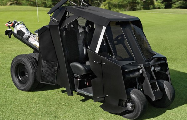 Если бы Брюс Уэйн любил гольф, то его гольф-кар, наверняка, выглядел бы так черный Бэтмобиль. Он идеально подойдет всем любителям фильмов и комиксов про Бэтмена. Что интересно, максимальная скорость автомобильчика составляет 60 км/ч, что более чем в два раза превышает скорость средних гольф-каров. Авто также имеет два регулируемых кожаных сиденья, подставку для iPad, подстаканники и фары. Хотя реактивного двигателя, вместо него есть удобная подставка для клюшек.