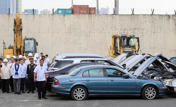 20 контрабандных роскошных авто раздавили бульдозером на Филиппинах