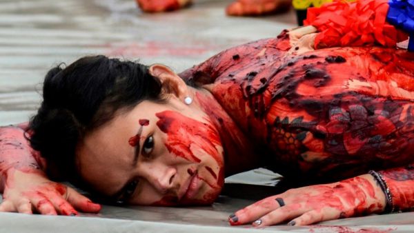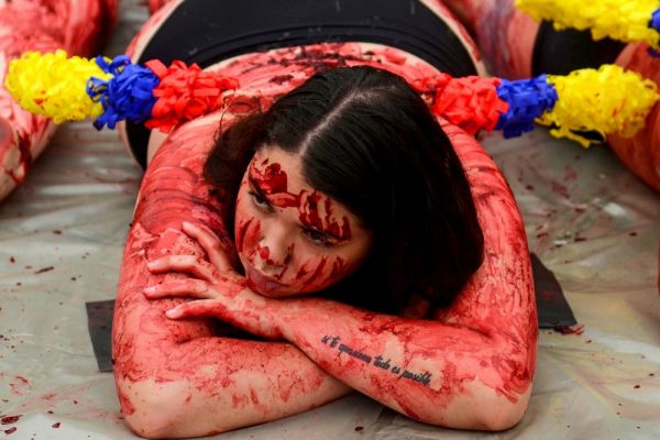 Полуголые активисты протестуют против корриды в Колумбии