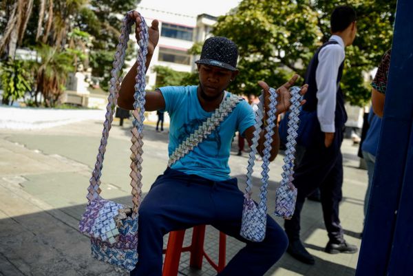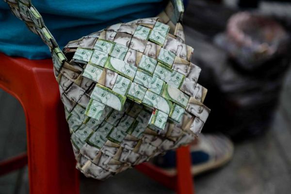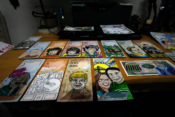 Инфляция в неспокойной латиноамериканской стране достигла 13 000 процентов. Деньги обесценились на столько, что их можно встретить на улице в кучах мусора. Некоторые уличные торговцы нашли способ продать банкноты дороже нынешнего официального курса. Они плетут из денег головные уборы, сумочки, юбки, кошельки и превращают банкноты в оригинальные поделки, в таком виде деньги стоят дороже. Иностранные туристы могут заплатить до $20 за одну разрисованную купюру, что увеличивает стоимость банкноты почти на 5 000 процентов.