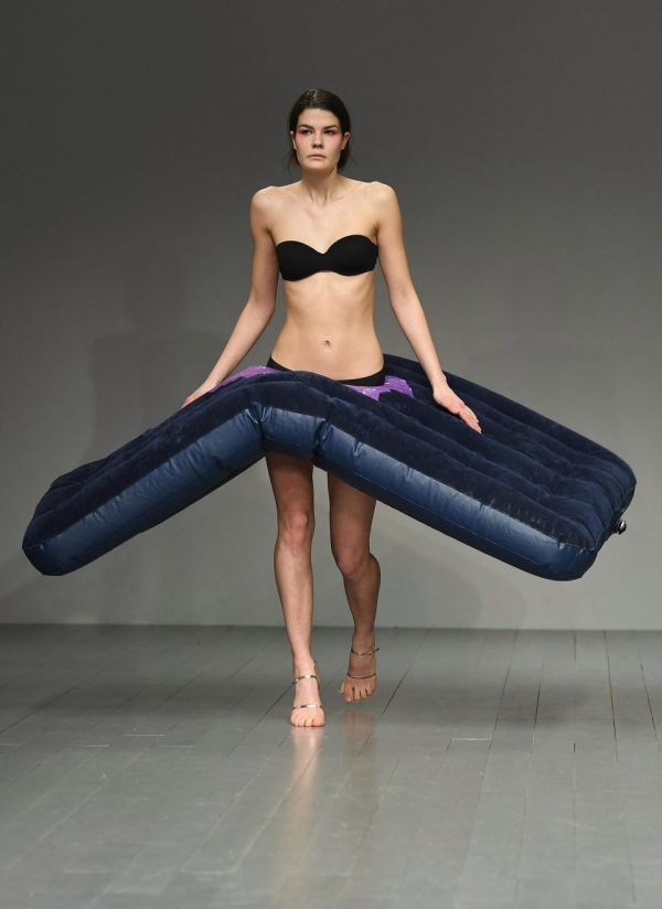 На днях стартовала Неделе моды в Лондоне — одно из важнейших событий fashion-индустрии, которое проходит дважды в год – в феврале и в сентябре. Помимо именитых дизайнеров, в мероприятии ежегодно принимают участие модельеры, который поднимают дурацкие наряды на новый уровень. Этот год не стал исключением, на подиум вышли модели в платьях-презервативах, нарядах из надувных матрасов и в обуви в форме лица Дональда Трампа.