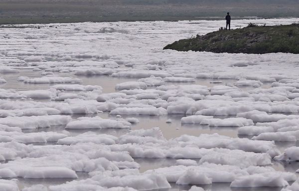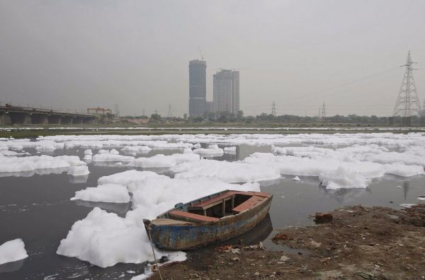 В аккурат перед Всемирным днем водных ресурсов река Джамна в Индии покрылась плотным слоем белой пены. Это может выглядеть красиво и манить искупаться в огромной пенной ванне, но на самом деле пузырьки токсичны, поскольку образовались в результате слива в реку промышленных отходов.