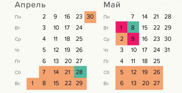 "Одна из апрельских суббот станет рабочей из-за переноса праздничных дней. Выходной переносится с субботы 28 апреля на понедельник 30 апреля. Благодаря переносу, в праздник Весны и Труда граждане отдохнут четыре дня - с 29 апреля по 2 мая", - отметили в пресс-службе Роструда.