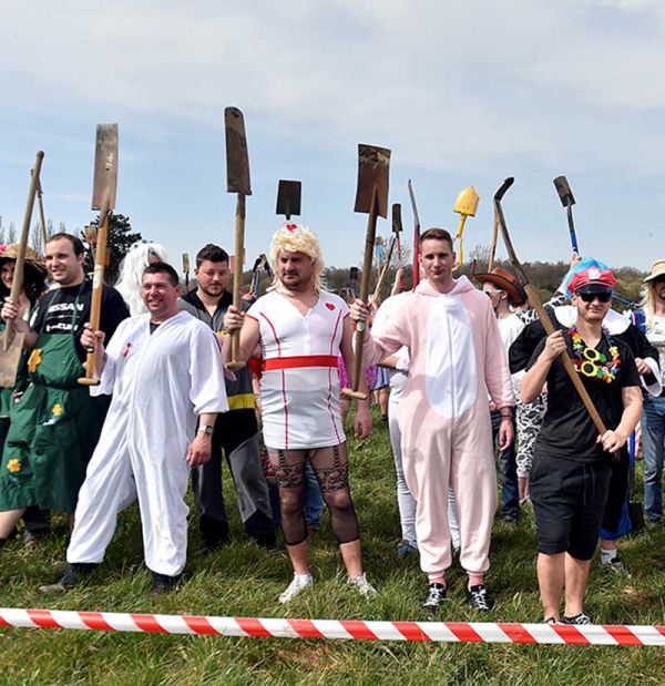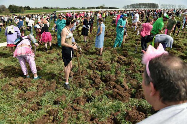 В Бельгии вот уже восьмой раз проводится веселый фестиваль поиска секс-игрушек — от кондомов до дорогих причиндалов с примочками. "Клад", предоставленный двумя компаниями-продавцами игрушек для взрослых, тщательно упаковывают и зарывают на поле. В этом году на праздник прибыло 4 000 кладоискателей с лопатами и 6 000 зевак, желающих поглазеть на этот цирк и попить пивка на свежем воздухе.