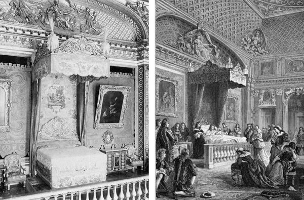 На такой кровати не стыдно было и придворных принять, что, к примеру, французский монарх Людовик XIV и делал. Удобно устроившись под балдахином с надписью «Триумф Венеры», он даже заседания парламента проводил. Принцы крови при этом сидели, придворные стояли, а мелкие чиновники стояли на коленях. Обычай принимать гостей лежа вообще был в моде. Женщины часто вообще не вставали с кровати, принимая у себя близких родственников и друзей. Остается добавить, что спал король-солнце все-таки на другой кровати, вероятно, более скромной; впрочем, если верить архивным источникам, у него их было не менее 413 — мог позволить себе выбирать.