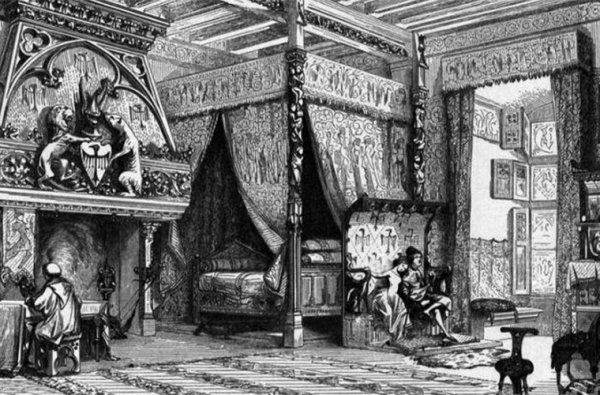 Простые смертные в раннем Средневековье недалеко ушли от каменного века и по-прежнему спали где придется: стелили на пол или на скамейку у стены ковры, покрывали поверхность матрасами, набитыми перьями, шерстью или волосом, укрывались тканью, шкурами. От насекомых спасал полог. Ткань могла быть и легкой, и плотной — в зависимости от климата; полог, помимо прочего, укрывал от сквозняков — спали-то в древности нагишом.