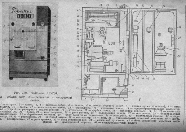 Первый раз их серьезно прорабатывал еще Анастас Микоян, который тогда занимал пост заместителя председателя совнаркома и заодно наркома пищевой промышленности. В 1937 году он тоже побывал в США и заинтересовался вопросом автоматизации. На массовое внедрение торговых аппаратов Микоян все же не решился, но производство установок для хот-догов и гамбургеров запустил в разработку. Такой автомат даже описали в статье журнала «Техника – Молодежи» (№1 1938 года). Вот только война и последовавшая затем кампания по борьбе с американизмами помешали их появлению.