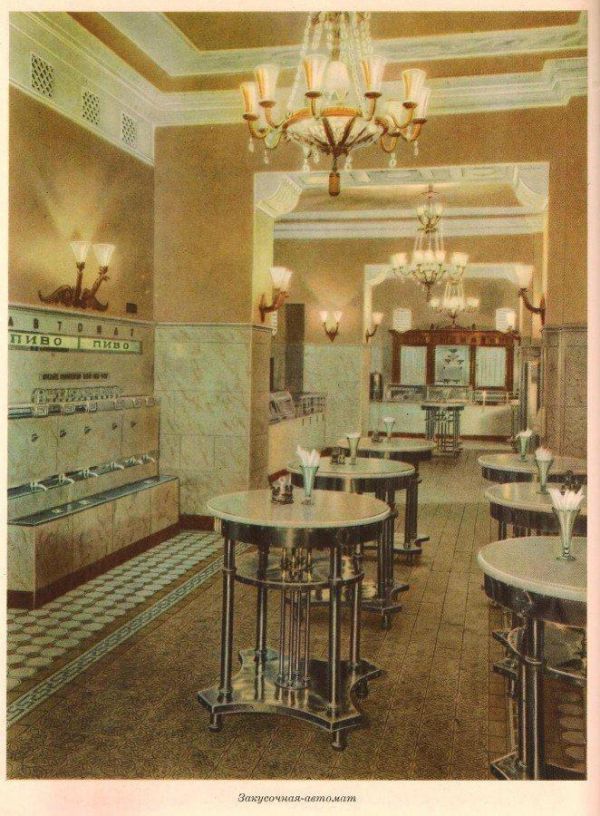 Отдельно надо рассказать про кафе-автоматы, которые начали открывать в крупных городах. Этот формат тоже подсмотрели в США. Их появление население встретило с восторгом. Некоторые, вроде «Кафе-Автомат» на Невском проспекте (дом 45) в Ленинграде, стали легендами.