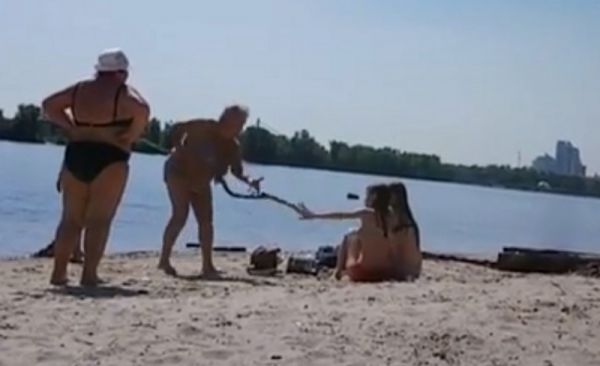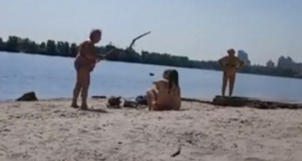 На одном из пляже Киева женщина с палкой набросилась на двух отдыхавших по соседству девушек. Предположительно, ей не понравилось то, что девушки курили и распивали спиртное в общественном месте.