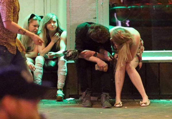 В Великобритании установилась довольно жаркая погода, но перед выходными прошли проливные дожди с грозами. Непогода не остановила множество людей, которые решили прогуляться по пабам, барам и клубам в уик-энд. Не все выдержали обильных алковозлияний, кто-то еле сдерживал рвоту, некоторых товарищей не держали ноги, а кое-кого пришлось нести на руках. Вот несколько снимков с улиц Бирмингема и Блэкпула.