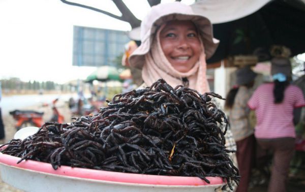 Разновидность ядовитого тарантула «а-пинг» размером с человеческую ладонь в этой стране считается деликатесной закуской. Паука обваливают в муке, приправляют специями и обжаривают во фритюре. Перед тем как приступить к приготовлению, повар удаляет ядовитые клыки. Однако, если шеф только недавно начал готовить это блюдо, то есть риск, что в силу неопытности на тарелку паук попадет еще ядовитым. Появление этого блюда связывают с годами правления «красных кхмеров», когда из-за дефицита еды люди вынуждены были буквально переходить на подножный корм.