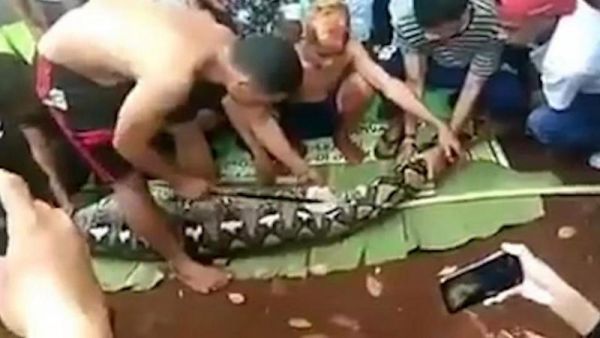 Убитые горем дети женщины вызвали полицию, после чего к 9 утра сотни жителей деревни собрались, чтобы произвести вскрытие питона, в животе которого и обнаружили уже бездыханное тело индонезийки.