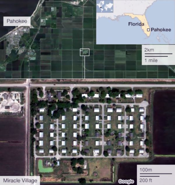 В округе Палм-Бич, штат Флорида, в окружении полей сахарного тростника расположена деревня Чудо (Miracle), большинство жителей которой являются преступниками. 200 человек из этого поселения были осуждены за грабежи и убийства, и более 100 — за преступления сексуального характера. Некоторые из них носят устройства GPS, установленные и контролируемые полицией.