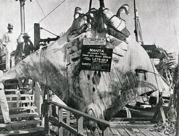 Это фото обычно в интернете подписывают как «Великий Скат» или «Great Manta», которого поймал капитан Кан, 1933 год.