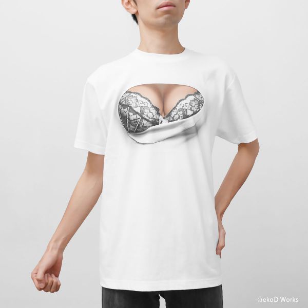 Японский модный бренд ekoD Works разработал футболку «Сетка иллюзий», которая сбивает наблюдателя с толку. Если смотреть на вещь «анфас», то под ней словно скрывается внушительного размера грудь, хотя «в профиль» ее может и не быть.