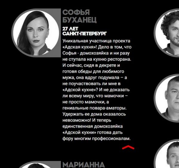 Один из пользователей сайта Pikabu во время просмотра "Адской кухни" заметил, что лицо одной из участниц кулинарного шоу, 27-летней Софьи Буханец из Санкт-Петербурга, ему показалось знакомым. На сайте телеканала "Пятница" девушку называют "домохозяйкой" и мамочкой.