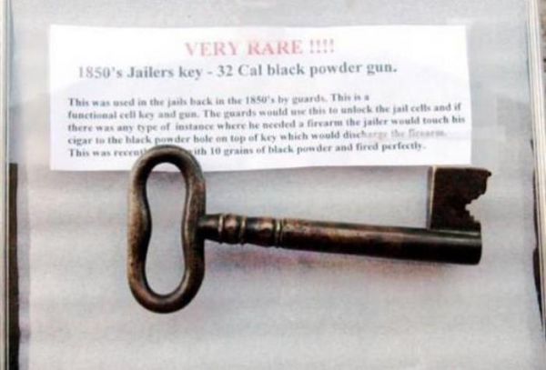 В 1850-х годах тюремщики в США получили особый тип огнестрельного оружия, похожего на ключ. Эти ключи-пистолеты на самом деле использовались для запирания камер в тюрьмах, как и обычные ключи. Но в них был секрет — внутри «ключа» был ствол с 1 патроном «на крайний случай». В конечном итоге выпуск такого оружия был прекращен, поскольку у охранников было намного более полезное и практичное оружие.