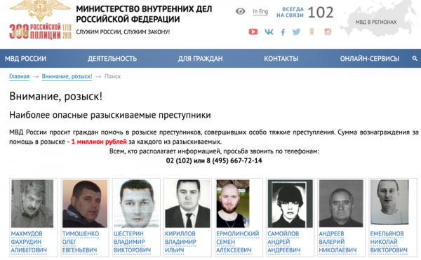 Официально МВД стало платить за такую информацию уже в 2012 году. Именно с тех пор 3 года подряд в бюджет закладывали 285 млн. руб. В нынешнем году в базе полиции есть преступники, за которых обещают по 1 млн. руб.