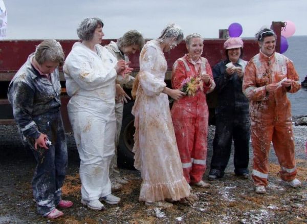 И снова в обзоре резонирующая традиция – в Шотландии достопочтенную невесту принято выкрадывать, после чего загрязнять всеми возможными способами. Накануне праздника люди «на счастье» кидают в нее прокисшим молоком, трупами рыбы, дегтем, протухшей едой, перьями, яйцами, мусором и даже экскрементами животных, обливают неприятными жидкостями. Ко всему прочему девушку ждет экзекуция – ее привязывают к дереву, а друзья устраивают череду испытаний. После этого положена беззаботная ночь веселья вроде нашего «девичника». В стране существует поверье, что чем больше суровых испытаний выдержит будущая жена, тем устойчивее будет супружеская жизнь к бедам. Также это способ доказать семье жениха, что девушка готова к тяготам семейной жизни.