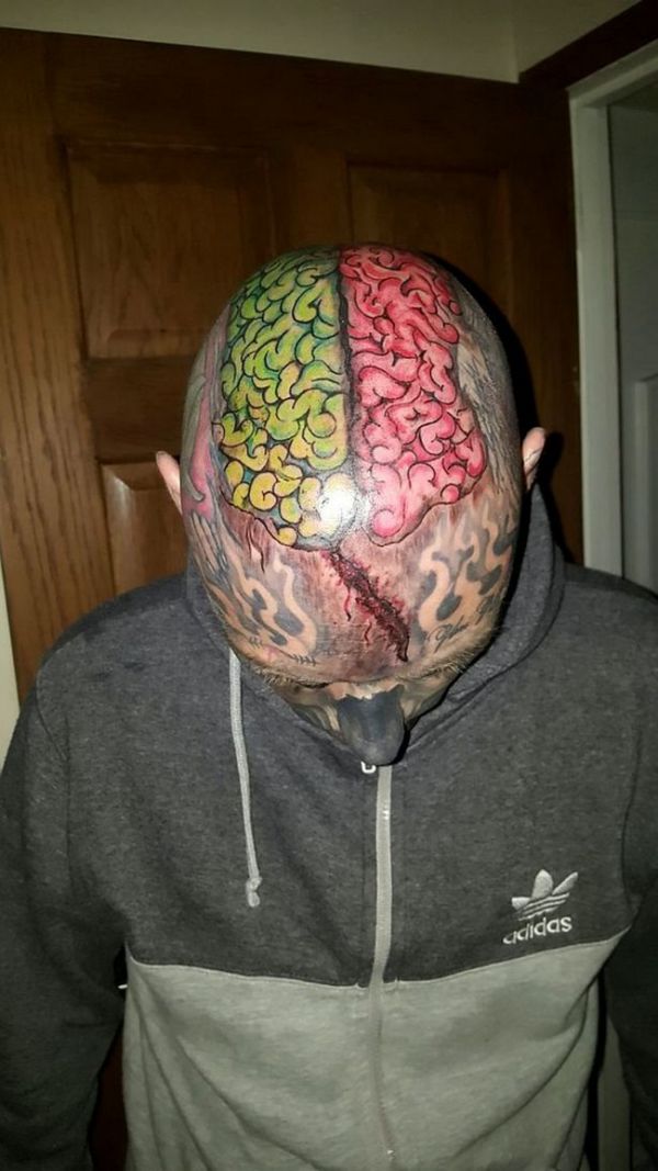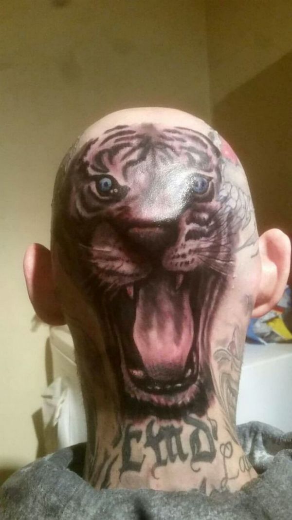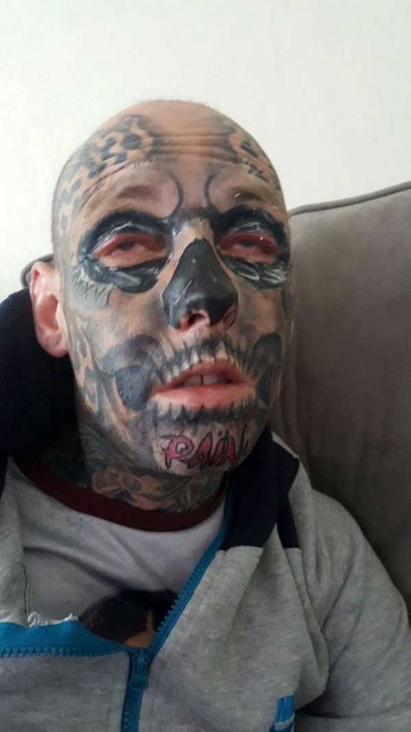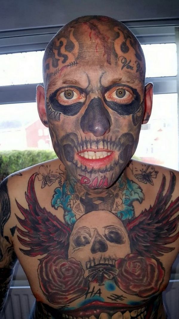Свою первую татуировку ирландец Крис набил в возрасте 16 лет, и ему настолько понравился результат, что к 30 годам его тело и лицо покрывают уже 600 тату, на которые он спустил 28000 фунтов (36 000 долларов). На этом Крис останавливаться не планирует - он мечтает забить все чистые участки кожи, включая глазные яблоки, пенис и пятки.