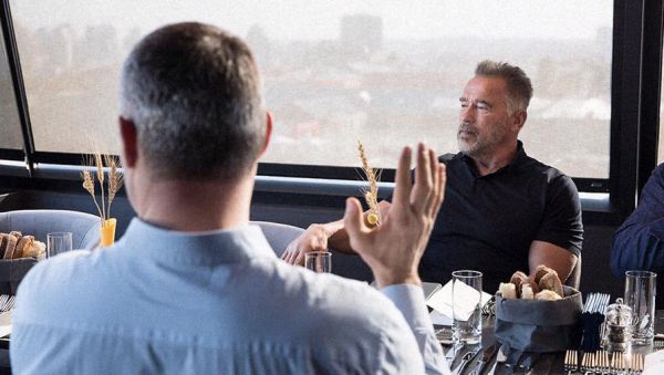 Американский актер Арнольд Шварценеггер, больше всего известный в России за роль в «Терминаторе», впервые прибыл в Киев. Он пообщался с мэром города Виталий Кличко и премьером Украины Владимиром Гройсманом.
