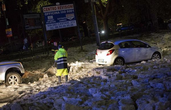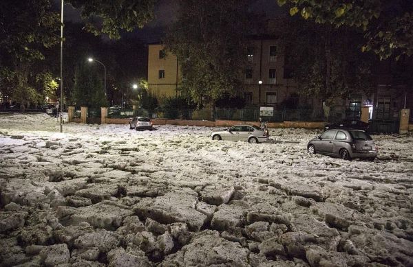 итальянскую столицу залило водой и завалило градом