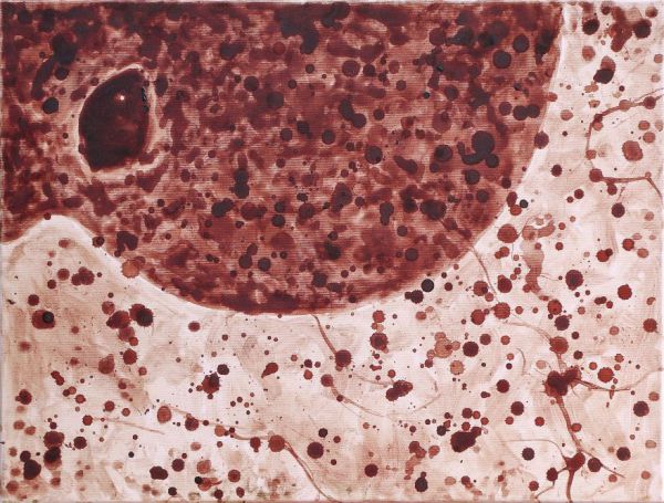 Написать такую картину девушку вдохновил собственный менструальный цикл. "Менструальный цикл вдохновил меня родить нечто такое, что имеет биологический конец, и в тоже время является началом чего-то нового", — говорит художница.