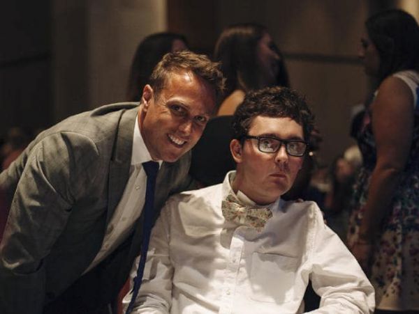 Бывший австралийский спринтер Мэтт Ширвингтон с Сэмом Баллардом на благотворительном вечере по сбору средств для лечения