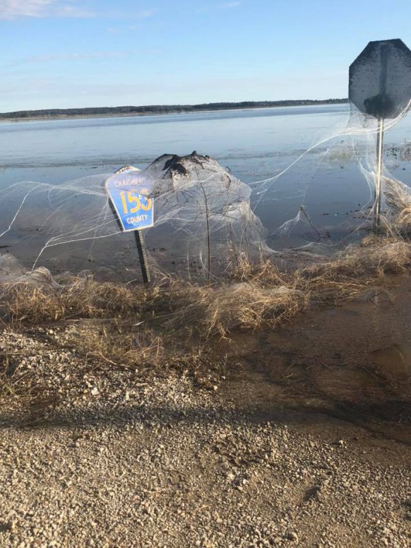 Зак Риггс (Zach Riggs) из Джонсборо ехал по шоссе 230, недалеко от Боно, штат Арканзас, когда он наткнулся на кошмарную картину. Из-за недавних штормов в регионе установилась влажная погода и вдоль трассы тысячи пауков сплели паутину для спаривания. Зак естественно остановился и снял фото и видео, которыми он поделился на Facebook 7 ноября с подписью: "Кому-нибудь нужны пауки?"