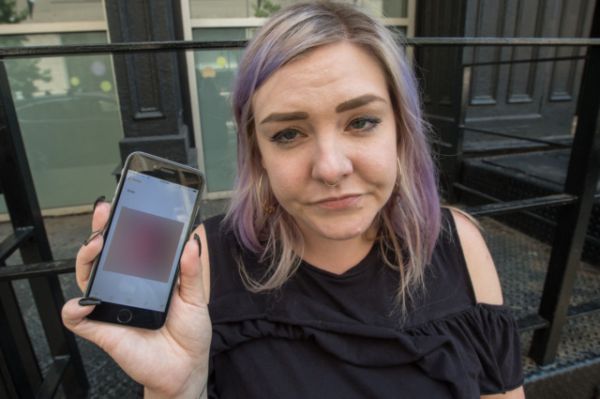 Жительница Нью-Йорка Бритта Карлсон (Britta Carlson) показывает «дикпик», полученный по AirDrop. Фото NY Post