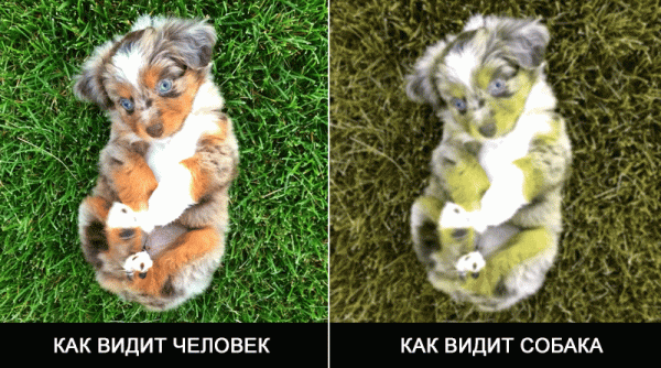 Действительно, в точности представить себе, как видит собака, мы не можем. Не можем и в точности сказать, существует ли для нее какое-то понятие, сходное с человеческим понятием цвета, или нет. Но какие-то предположения ученые строят исходя из исследований устройства глаза собаки. А устройство ее глаза говорит о том, что скорее всего собака воспринимает только яркость источника, но не видит его «цвет»: ведь сетчатка собачьего глаза оснащена рецепторами лишь одного вида — палочковыми клетками, а всякое «цветное зрение» требует наличия хотя бы двух видов.