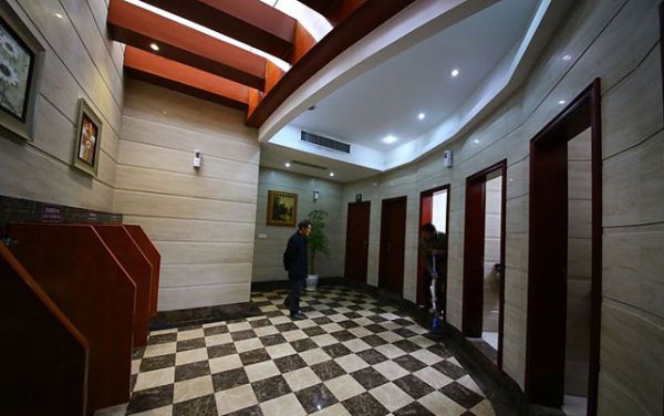 Туалет площадью 150 кв. метров отличается элегантным дизайном и качественными материалами интерьера — там мраморные полы и лакированные деревянные двери. Также есть климатическая система, которая круглосуточно и круглогодично обеспечивает температуру 26 градусов по Цельсию.