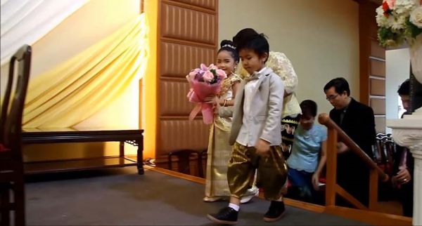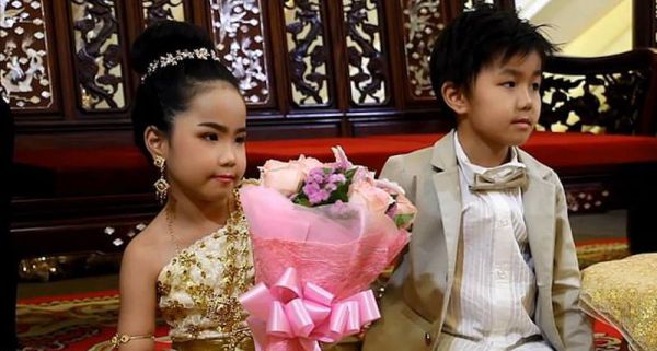 Двое 6-летних близнецов из Таиланда женились во время роскошной свадьбы, потому что их родители считают, что в своих прошлых жизнях дети были влюблены друг в друга.