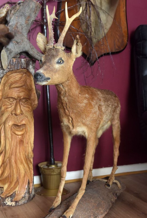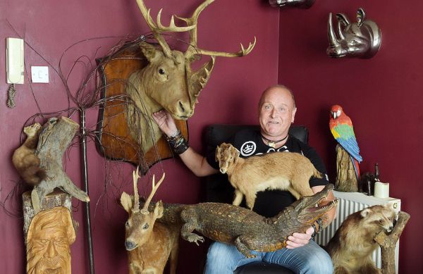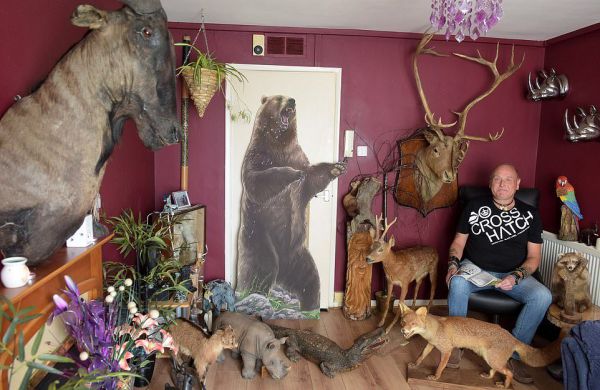 50-летний британец, Джим Кармайкл, до отказа забил свою однокомнатную квартиру чучелами животных, потратив на них 2000 фунтов. Его коллекция включает в себя крокодила, лису, енота, горностая, гну, карликового козла и других животных. Поскольку места для чучел не осталось, Джим переключился на картонные макеты: купил 6-футового гризли, два тигра и 8-футового аллигатора.